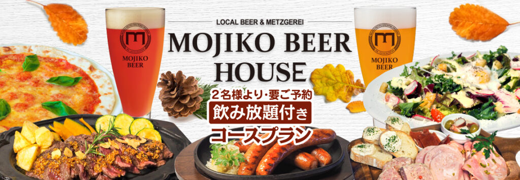 - 飲み放題付きコースメニュー門司港ビールの飲み放題がついているとってもお得なコースプラン。 全6品★飲み放題120分付コース 税込6,500円 2名様からご利用いただけます。 2日前までにご予約下さい