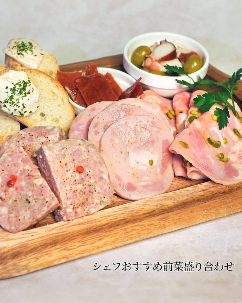 当店自慢のメツゲライ(ハム・ソーセージ)を盛り合わせた楽しいワンプレートです。