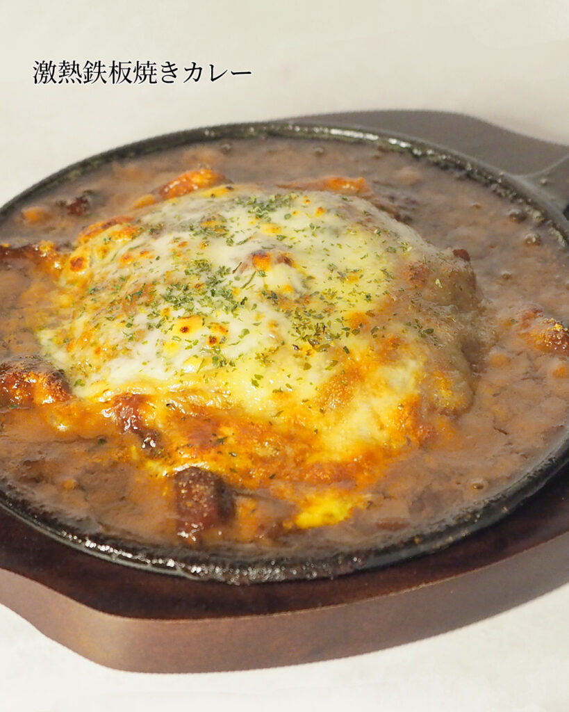 門司港名物の焼きカレー。鉄板で熱々に仕上げました。