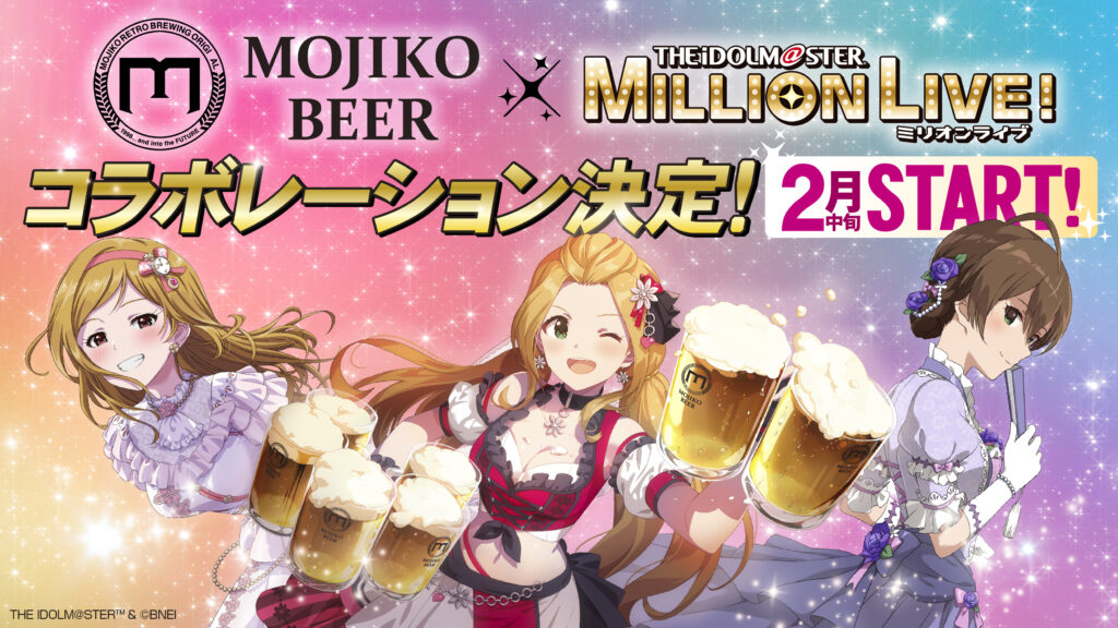 本日、生配信にて告知されましたとおり、アイドルマスター ミリオンライブ! × 門司港ビール、2026年2月中旬よりコラボします! 詳細は順次、発表していきます! どうぞお楽しみに!